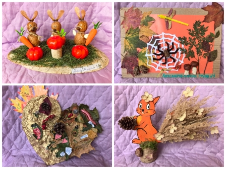 Осень – чудесная пора, вдохновляющая на семейное творчество, создание чего-то прекрасного! В наших дошкольных отделениях открылись выставки поделок «Волшебство осеннего леса». Совместные работы детей и их родителей погружают в удивительный сказочный мир, созданный из даров осени. Среди экспонатов выставки есть мудрые совы, милые ежи, пушистые белочки, добрые феи и волшебники, таинственные домики, причудливые деревья, загадочные полянки и грибочки. Для поделок были использованы шишки, желуди, каштаны, мох, кора деревьев, яркие листья – всё, что нашлось во время семейных осенних прогулок в парках и скверах. Использование природных материалов позволяет детям в полной мере проявить свою фантазию, развивает умение видеть волшебство в самых простых вещах. Традиционно, выставка осенних поделок стала не просто проектом, а совместным творчеством, которое подарило детям веру в чудеса, а взрослым – возможность ненадолго вернуться в детство.